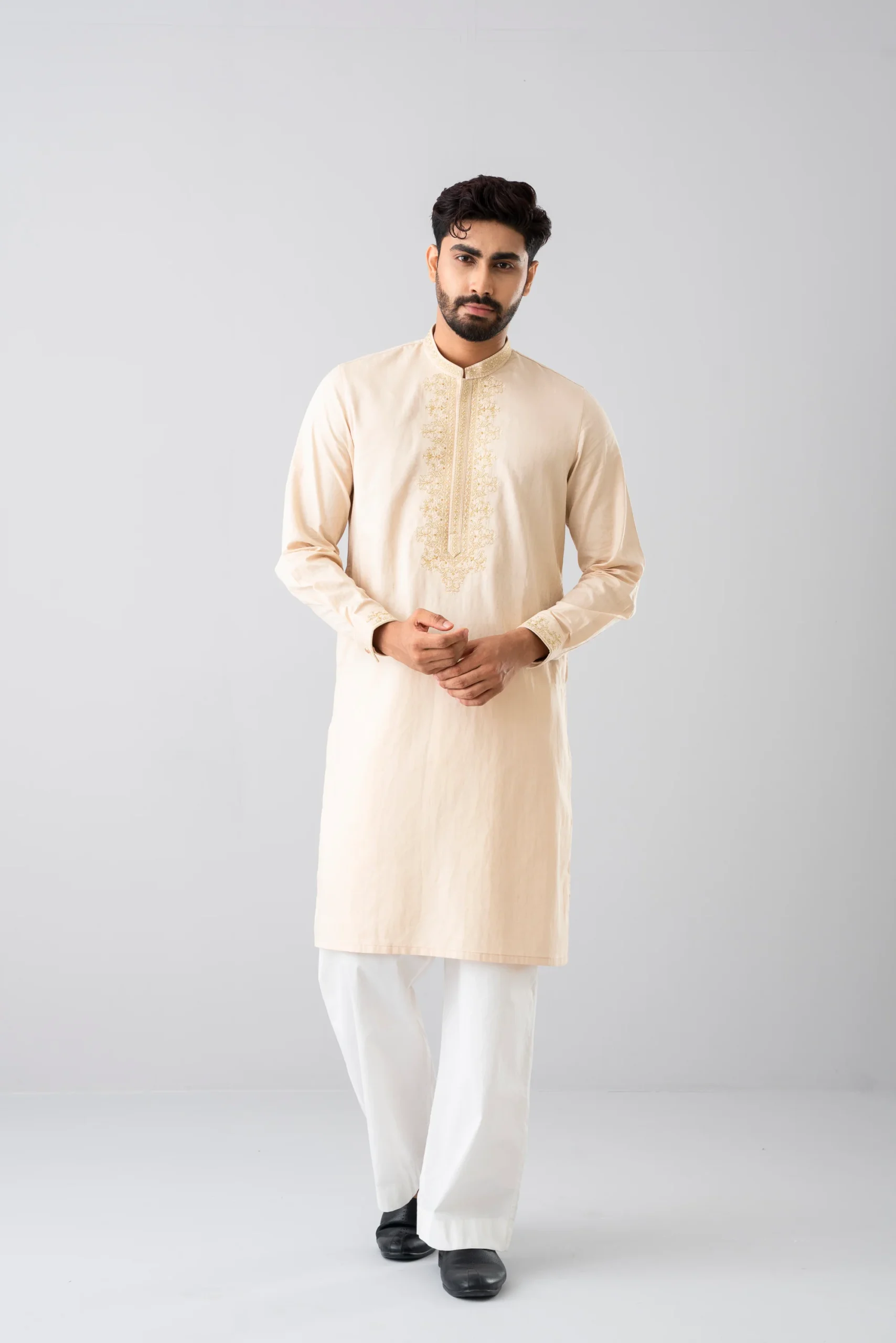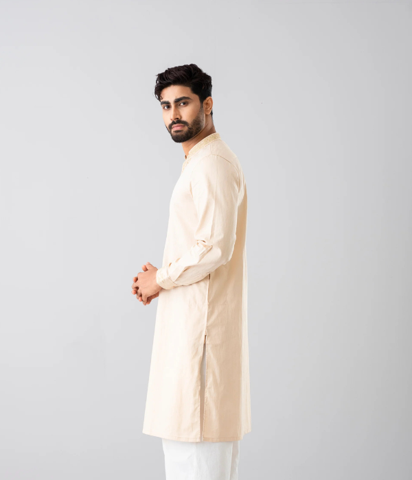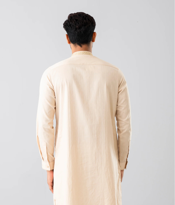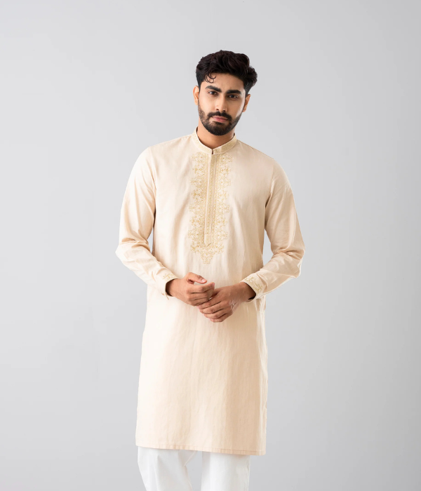 A regular-fit Panjabi crafted from 100% cotton fabric with classical embroidery